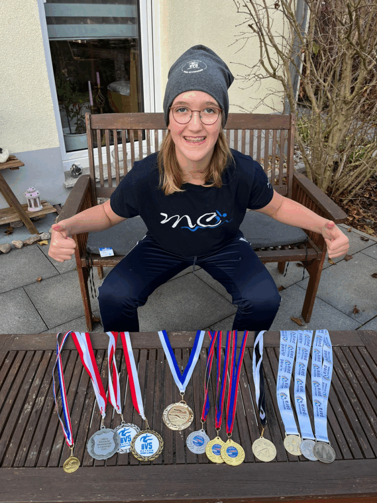 Wir gratulieren Nina Billmann in der C Jugend aktuell zu einem 2. Platz in 200 m Brustschwimmen und zu einem 3. Platz in 50 m Brustschwimmen bei den Deutschen Kurzbahn Meisterschaften im Para Schwimmen vom 14.-16. November 2025 in Nürnberg. In 2025 hat Nina schon an etlichen Wettkämpfen Deutschland weit teilgenommen und wurde aufgrund Ihrer konstant sehr guten Leistungen in den Leistungskader Team Bayern aufgenommen.